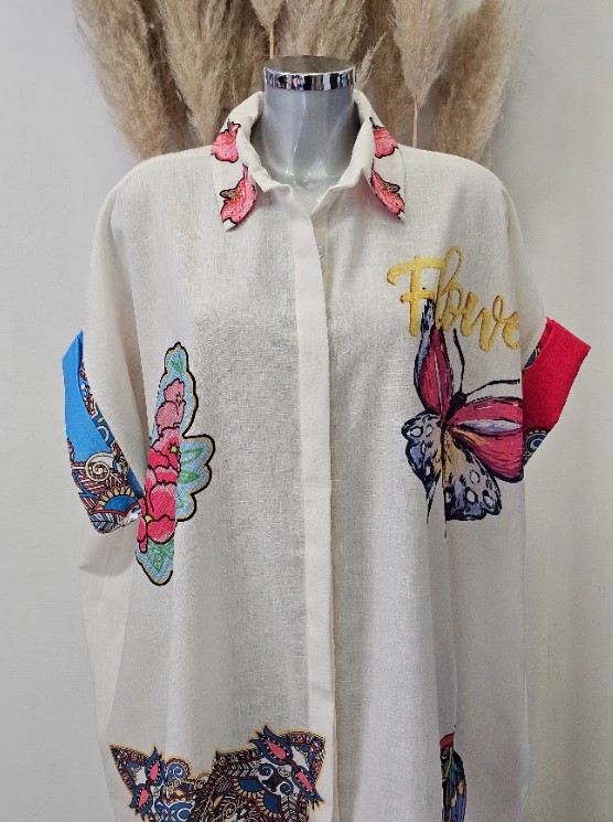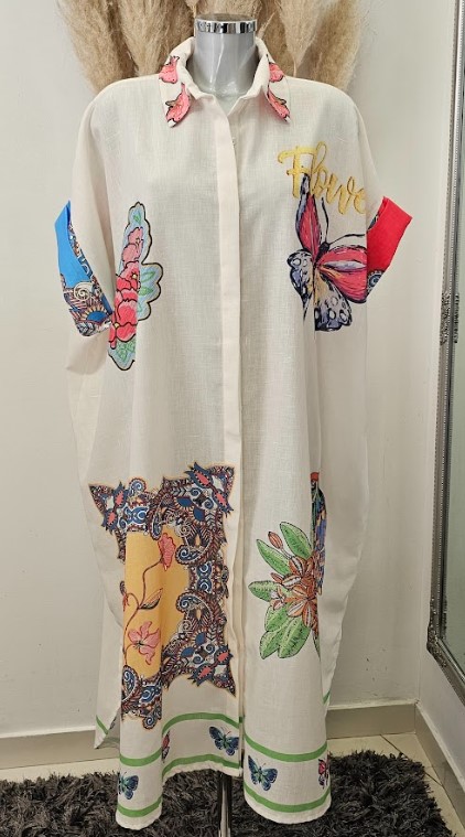 Ova bijela haljina s šarenim ilustracijama donosi veselje i kreativnost u vaš garderober. Svaka ilustracija dodaje jedinstveni šarm, stvarajući ležeran, ali trendi izgled koji je savršen za ljetne izlaske i svakodnevne prilike. S lakoćom se kombinira s sandalama ili tenisicama, pružajući vam udobnost i stil u jednom.
