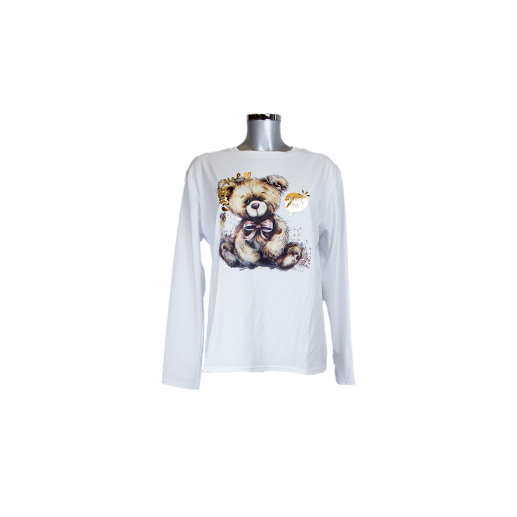 Bijela majica s ilustracijom medvjeda donosi šarmantan i zabavan izgled, savršena je za ležerne dnevne kombinacije.