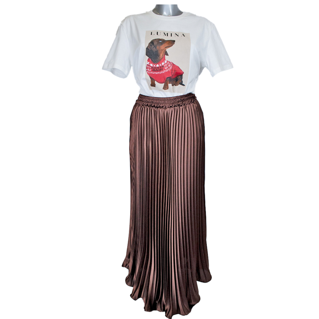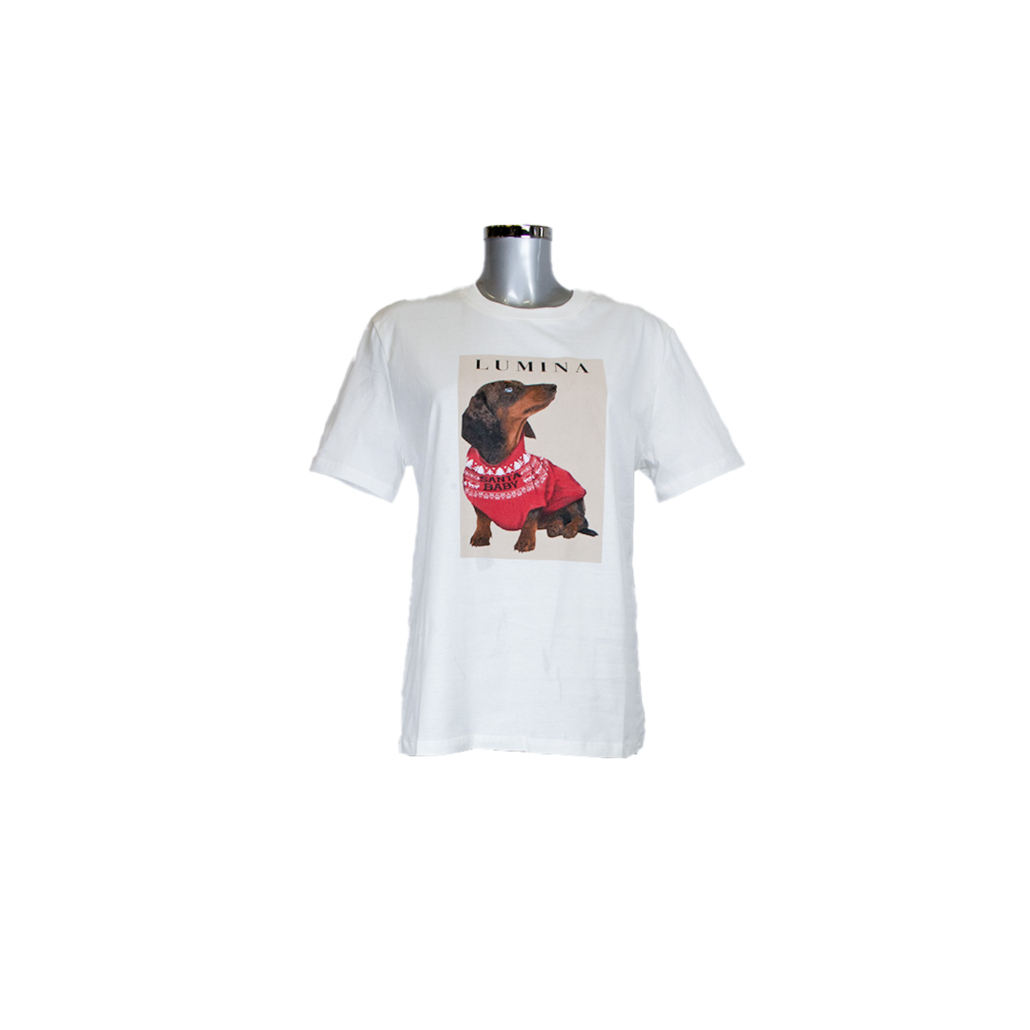 Bijela majica s uzorkom psa donosi šarmantan i zabavan izgled, savršena je za ležerne dnevne kombinacije.