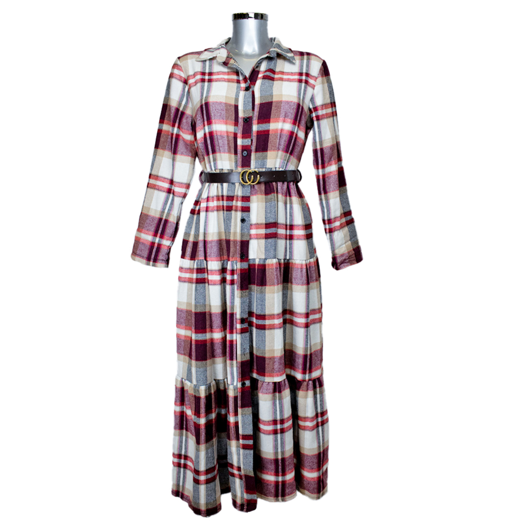 Bijelo-crvena karirana haljina dugih rukava savršen je spoj udobnosti i stila.