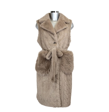 Bunda bez rukava s krznom donosi luksuzan i elegantan izgled. Savršena za hladnije dane, pruža toplinu uz moderni šarm, a krzneni detalji dodaju sofisticiranost svakom outfitu.