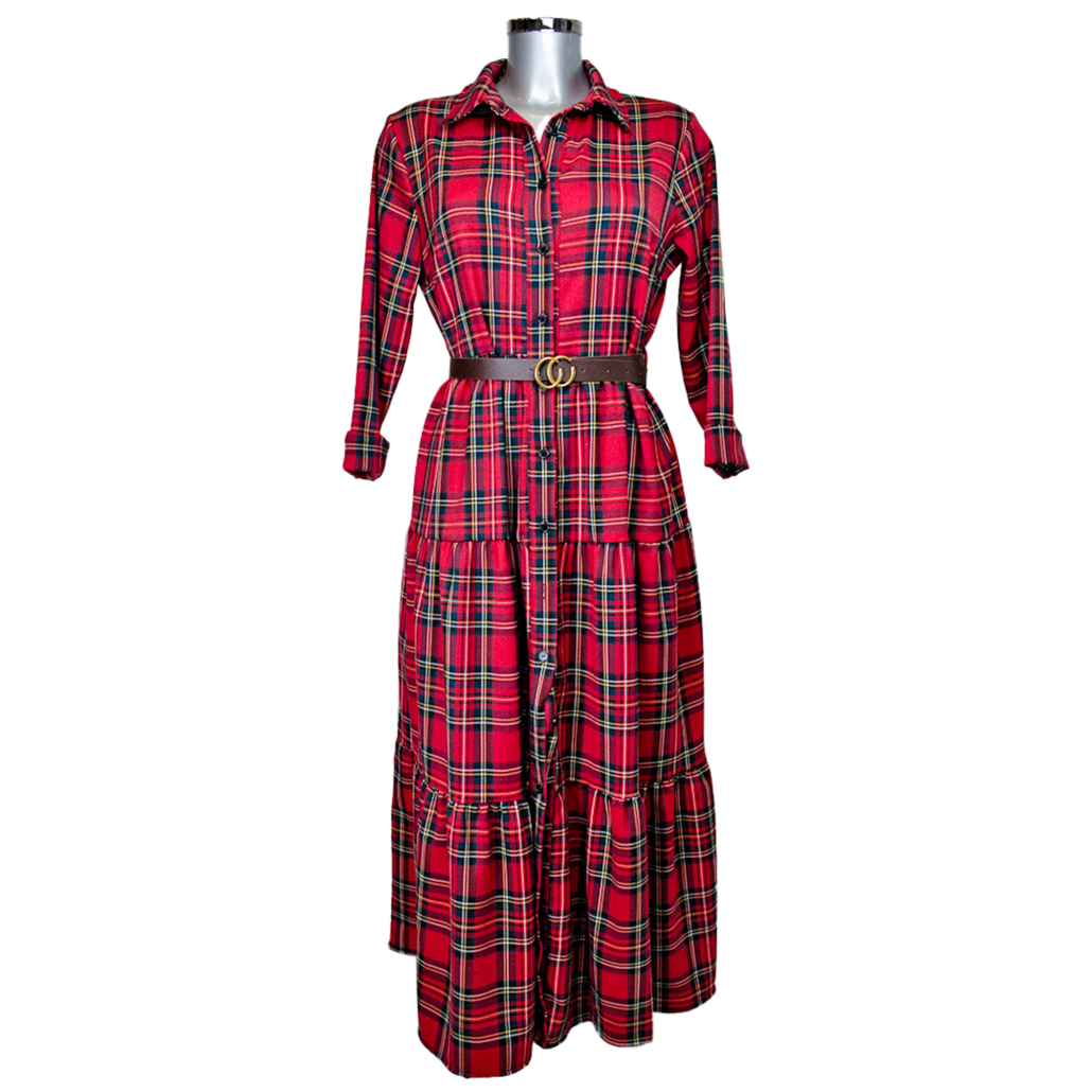 Klasičan karirani uzorak u kombinaciji s energičnom crvenom bojom čini haljinu trendi i veselim izborom.