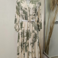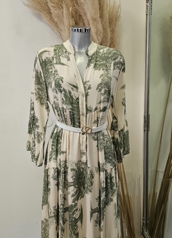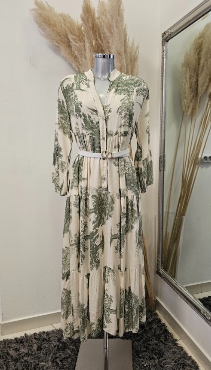 Ova haljina s zelenim ilustracijama donosi prirodni šarm i svježinu u vaš izgled. S modernim dizajnom i veselom paletom boja, savršena je za ljetne dane, šetnje ili opuštene izlaske. Lagan i udoban kroj omogućava slobodu kretanja, dok zelene ilustracije unose dašak umjetnosti i stila u svaki vaš korak.