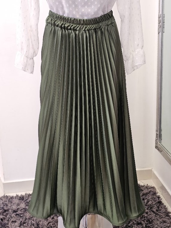 Dodajte dašak elegancije svom stilu s ovom maslinastom harmonika suknjom! Naborani dizajn donosi prekrasan fluidan efekt pri svakom koraku, dok maslinasta boja daje suptilnu sofisticiranost koja se lako uklapa u razne outfite. Idealna je za sve prigode – od poslovnih kombinacija do opuštenih večernjih izlazaka. Kombinirajte je s jednostavnim topom ili košuljom i istaknite svoj jedinstveni stil!