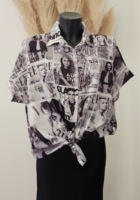 Ova košulja s dizajnom inspiriranim izgledom časopisa donosi urbani i sofisticirani šarm u vaš stil. S modernim printom, idealna je za one koji žele iskazati svoju osobnost kroz odjeću. Kombinirajte je s trapericama ili suknjom za moderan, trendi izgled koji ne prolazi nezamijećeno.