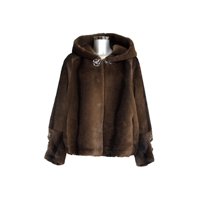Smeđa kratka bunda spoj je topline i elegancije. Mekani materijal pruža udobnost, a neutralna nijansa lako se uklapa u svaki stil. Idealna za hladne dane!
