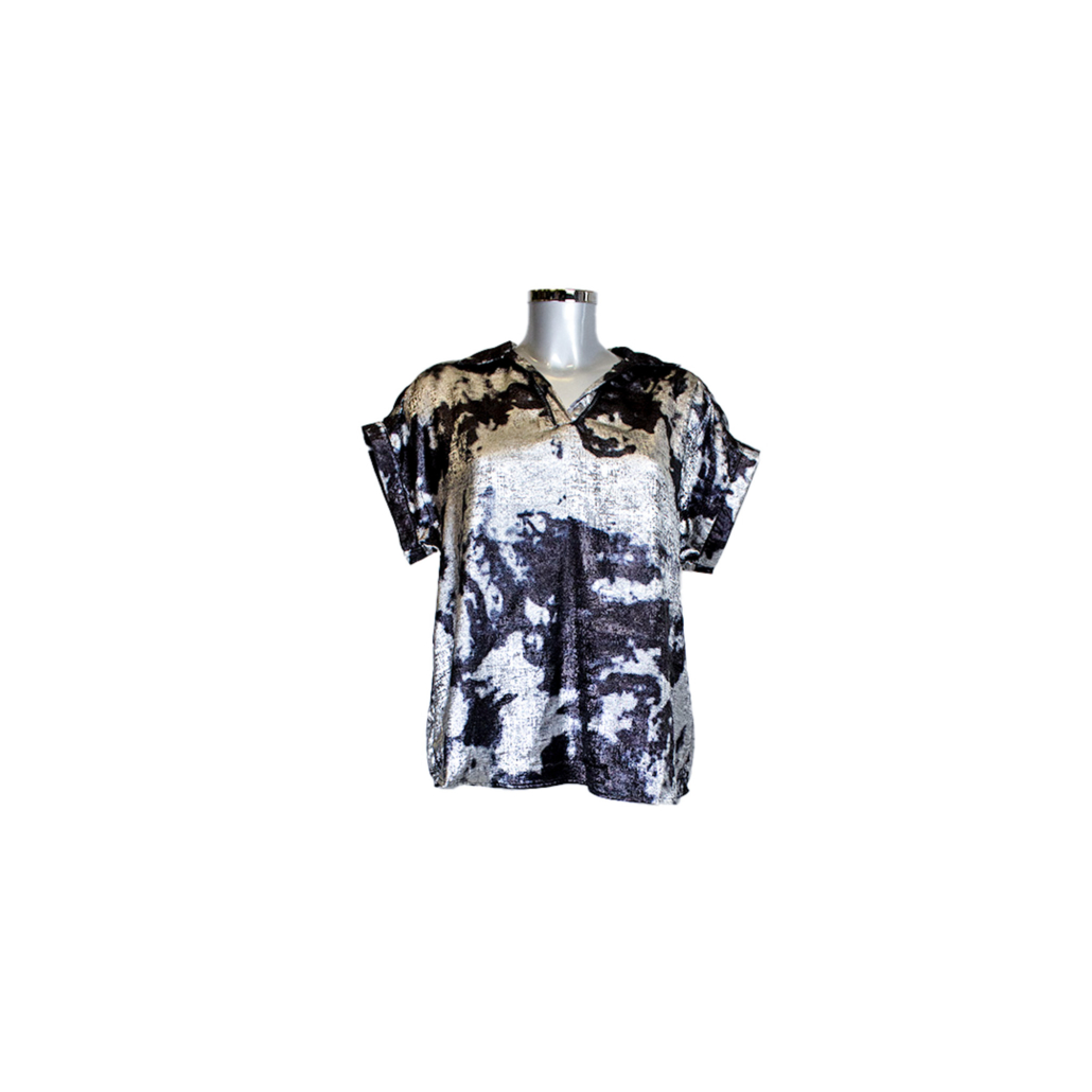 Šarena bluza kratkih rukava donosi veseli i energični izgled.
